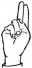 На ћирилици написано МАТИЈА УЛЕМЕК састоји се из 12 слова [?]. Исписано ћириличном једноручном азбуком за глувонеме: